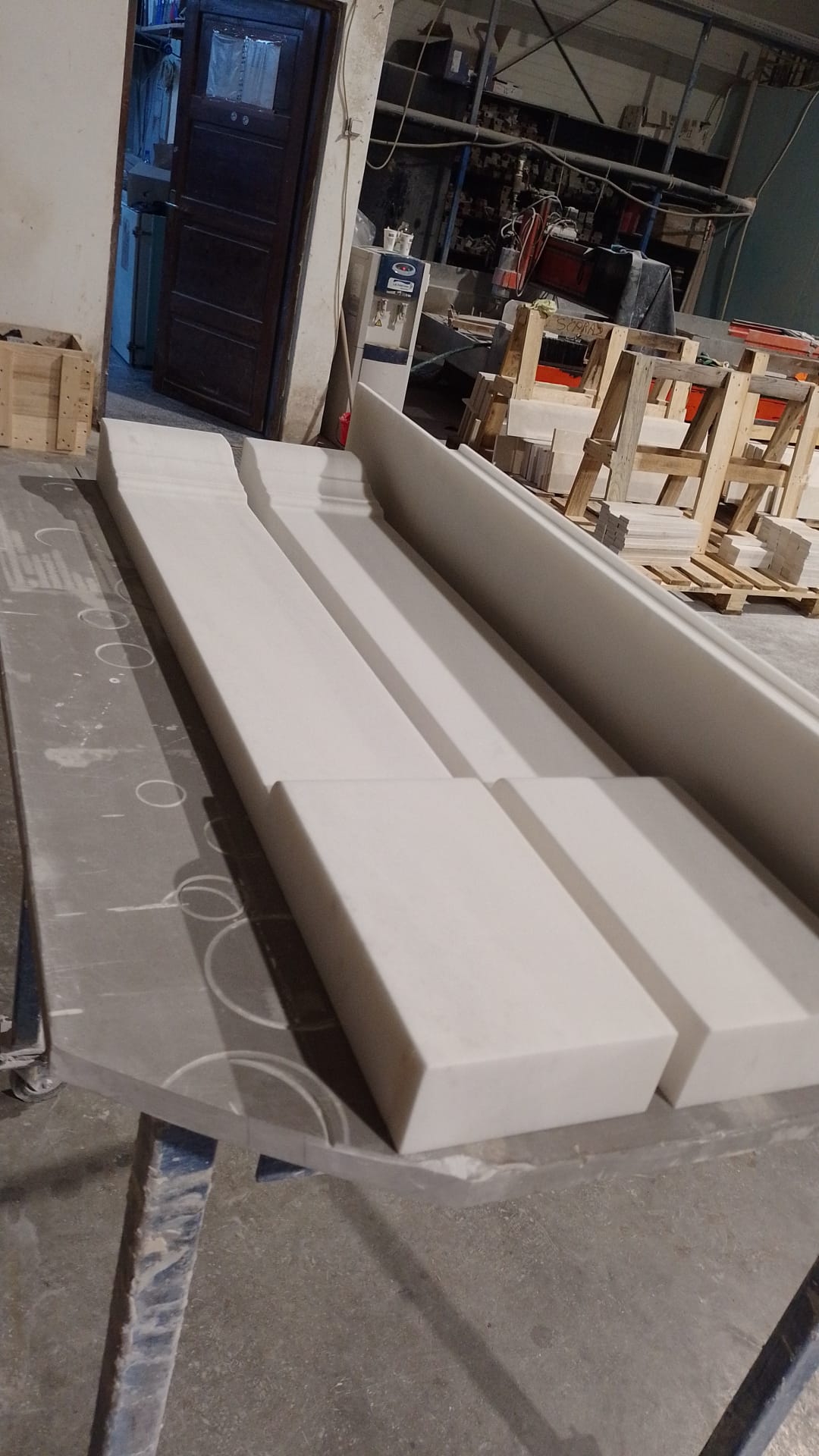 Capace și Ornamente: Producem șeminee din marmură la comandă, inclusiv capace, polițe, coloane și portaluri sculptate cu precizie.